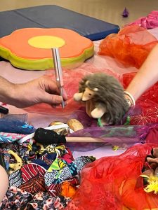 Un instrumentarium, fait de petites percussions, d’objets et de jouets de différentes natures, sont mis à disposition des familles.